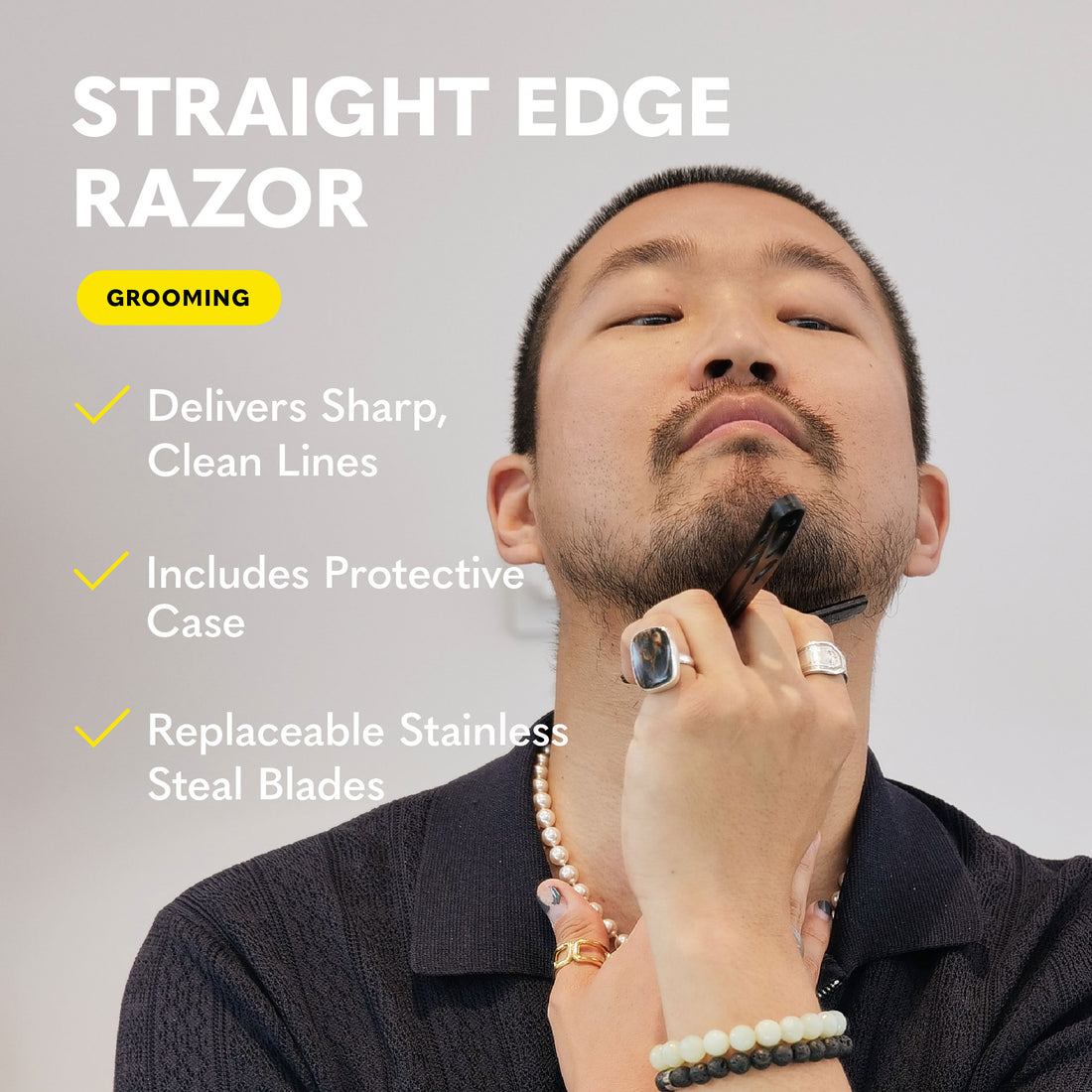 Our straight edge razor is perfectly balanced for superior control. Remove stray hairs and maintain your lines.